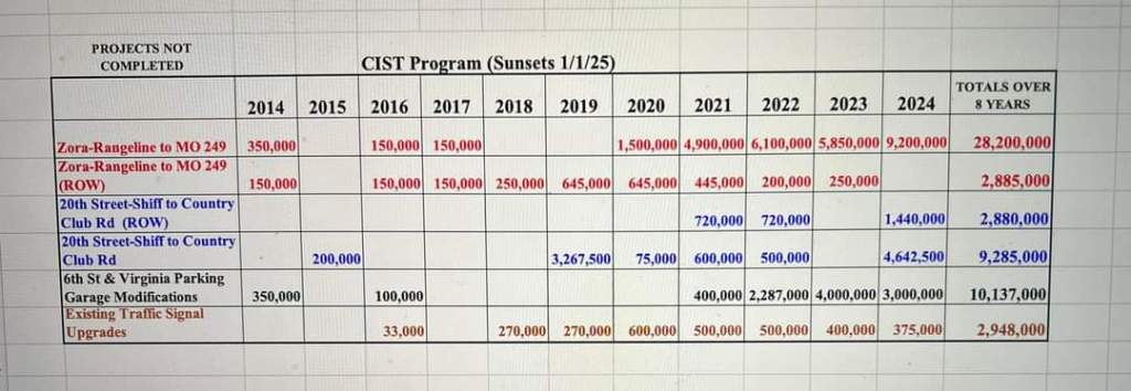 HIGHLIGHTED PROMISED PROJECTS FROM THE LAST CAPITAL IMPROVEMENTS TAX INITIATIVE BELOW… THE CITY FAILED TO EVEN START/COMPLETE